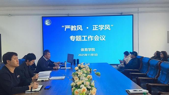 为全面响应学校学风建设工作部署,着力锻造高素质体育专业人才队伍,11月5日,体育学院在西馆三楼召开“严教风·正学风”专题工作会议,以精准谋划、闭环落实为抓手,推动学院教风学风建设提质增效、落地生根。会议由副院长刘大鹏主持,全体教职工参加。