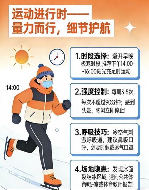 避开早晚极寒时段,推荐下午14:00-16:00阳光充足时运动。