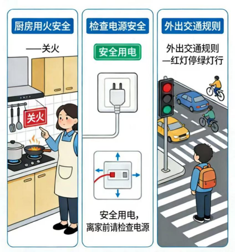 • 居家时注意燃气、电器使用安全,厨房用火不离人,睡前检查门窗与电源;训练间隙注意居家安全,避免因器械操作不当或运动热身不足导致受伤。