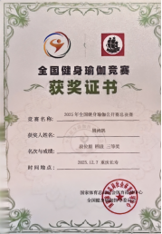 本次比赛不仅是一场竞技较量,一次自我审视、自我成长的旅程,更是实力的检验,团队凝聚力的彰显。我校健身瑜伽队用汗水书写青春答卷,为学校体育事业发展添上浓墨重彩的一笔。期待这支充满活力的队伍在未来的赛事中继续突破自我,再创辉煌!
